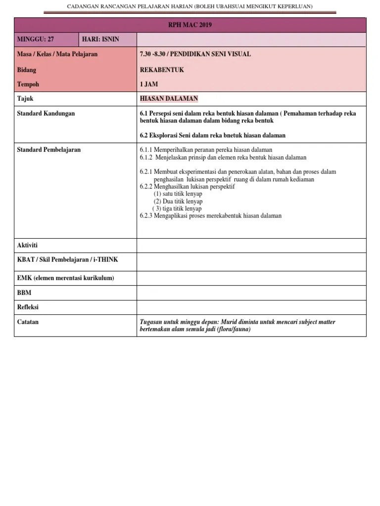 Pendidikan seni visual tingkatan 3 bab 6 reka bentuk hiasan dalaman ( dua titik lenyap ) m/s 73.